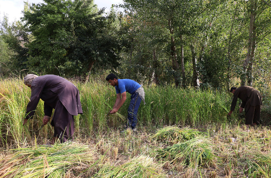 An Afghan farmer harvests rice in a paddy field in Andrab district of northern Baghlan province, Afghanistan, Oct. 8, 2019. (Xinhua/Sahel)