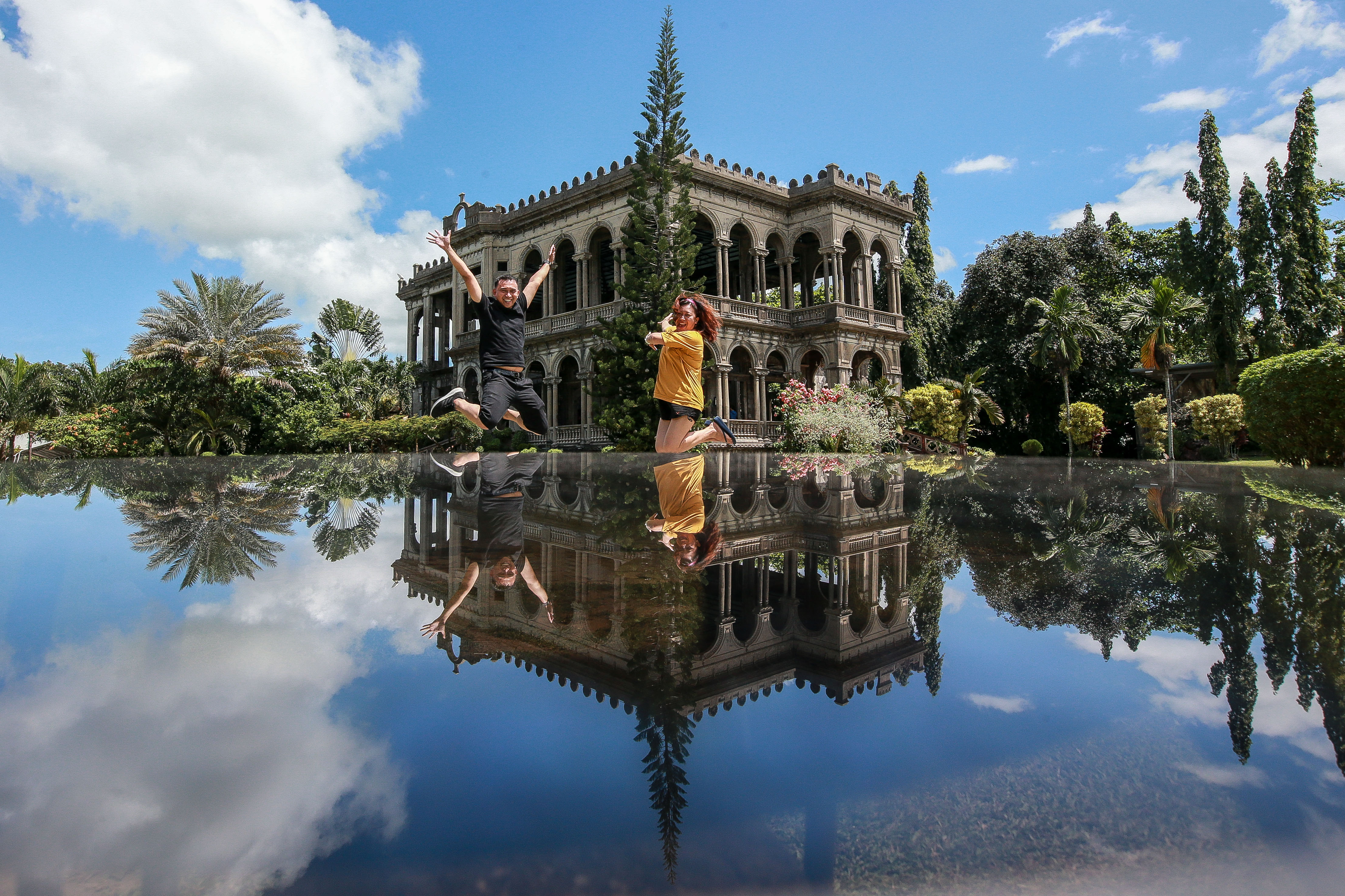 People pose for photo as they visit a tourist spot called The Ruins in Talisay City, the Philippines, Oct. 16, 2019. (Xinhua/Rouelle Umali)