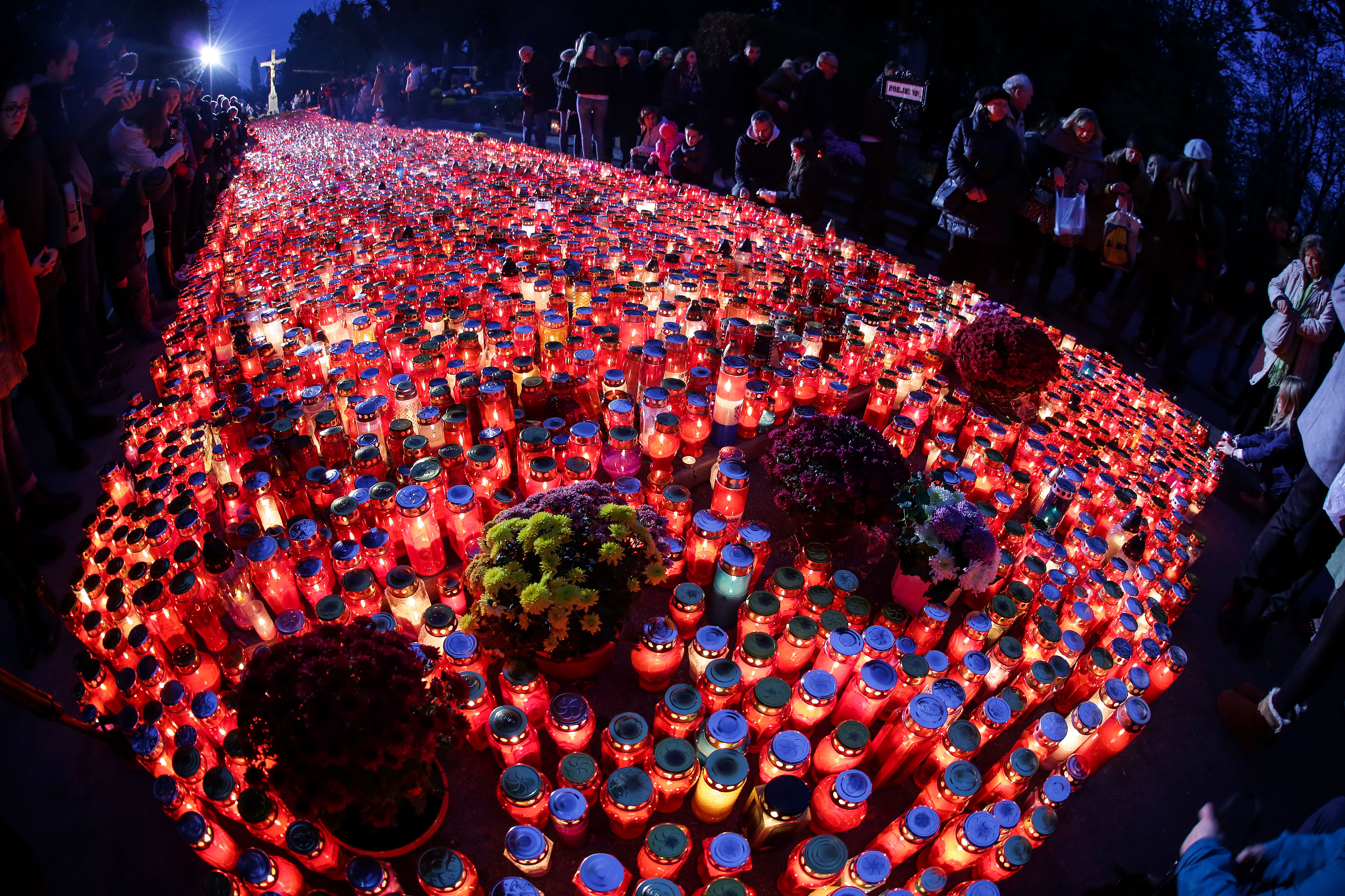 People pay their respects to the deceased at the Mirogoj Cemetery in Zagreb, Croatia, on Nov. 1, 2019. (Marin Tironi/Pixsell via Xinhua)