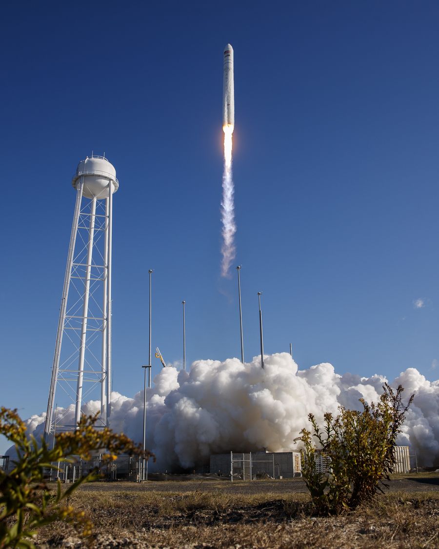 The Antares rocket carrying the Cygnus cargo spacecraft lifts off from NASA's Wallops Flight Facility in Wallops Island, Virginia, the United States, Nov. 2, 2019. The spacecraft carried about 8,200 pounds (3,719 kg) of supplies and scientific experiments to the station. (Photo by Ting Shen/Xinhua)