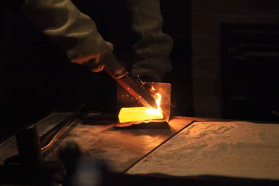 File photo taken on Dec. 27, 2018 shows gold pouring performance to make a gold bar in Ballarat, Australia. (Xinhua/Pan Xiangyue)