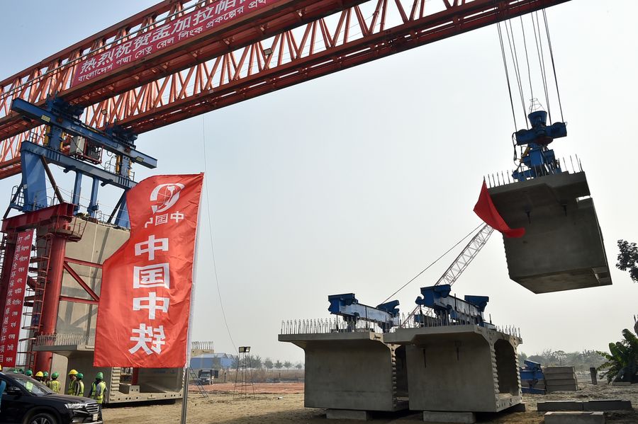 The Chinese engineers successfully installed the first box girder of Bangladesh's longest elevated railway. The 17-km railway is a part of 169-km-long China-financed Padma Bridge Rail Link Project that will provide the first direct rail link between southwest Bangladesh with central area.