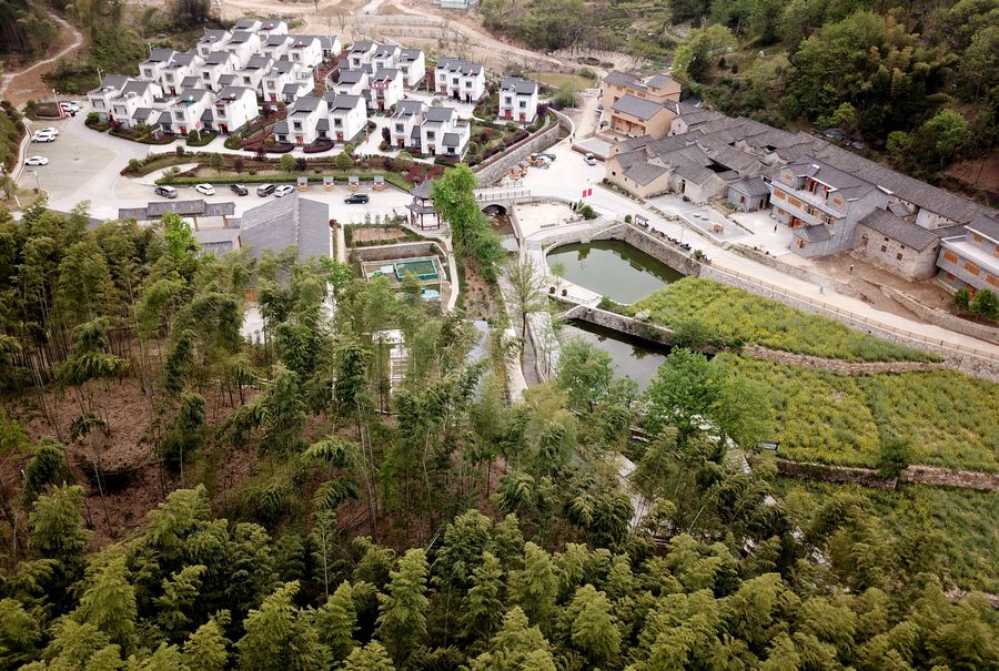Aerial photo taken on April 16, 2020 shows residential buildings in Dawan Village of Jinzhai County, east China's Anhui Province. (Xinhua/Liu Junxi)