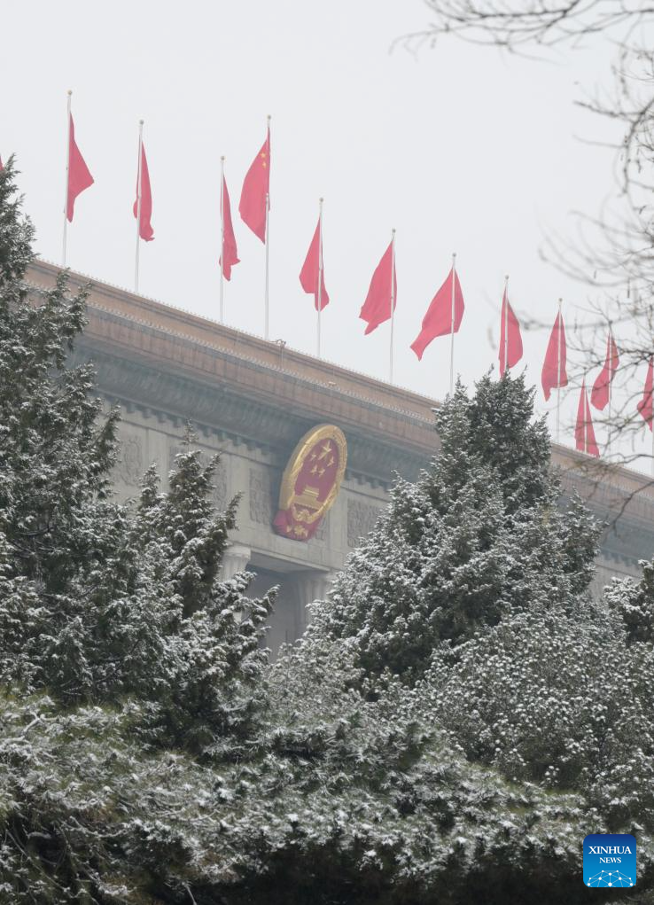 This photo taken on March 5, 2026 shows the snow scenery of the Great Hall of the People, the venue for the opening meeting of the fourth session of the 14th National People's Congress (NPC), in Beijing, capital of China. (Xinhua/Li He)