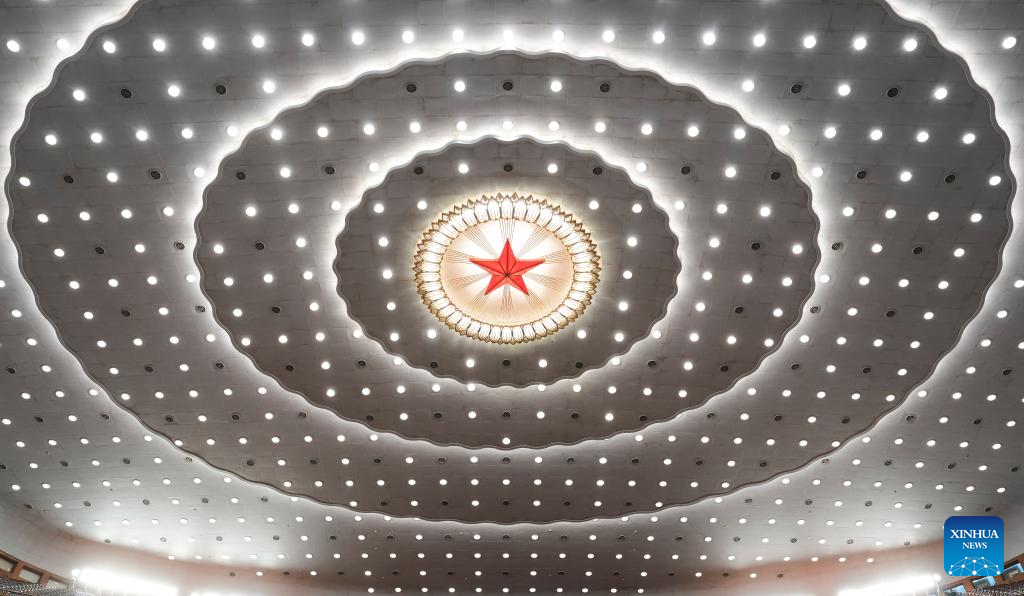 This photo taken on March 5, 2026 shows an interior view of the Great Hall of the People, the venue for the opening meeting of the fourth session of the 14th National People's Congress (NPC), in Beijing, capital of China. (Xinhua/Xing Guangli)