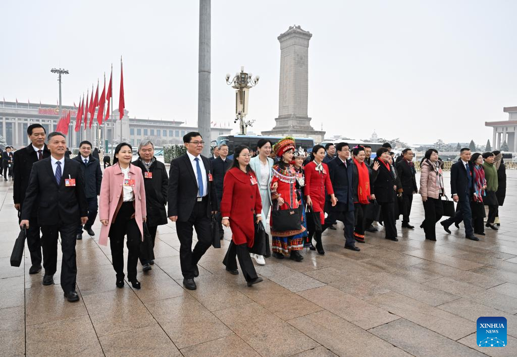 Deputies to the 14th National People's Congress (NPC) walk towards the Great Hall of the People for the opening meeting of the fourth session of the 14th NPC in Beijing, capital of China, March 5, 2026. (Xinhua/Chen Yichen)