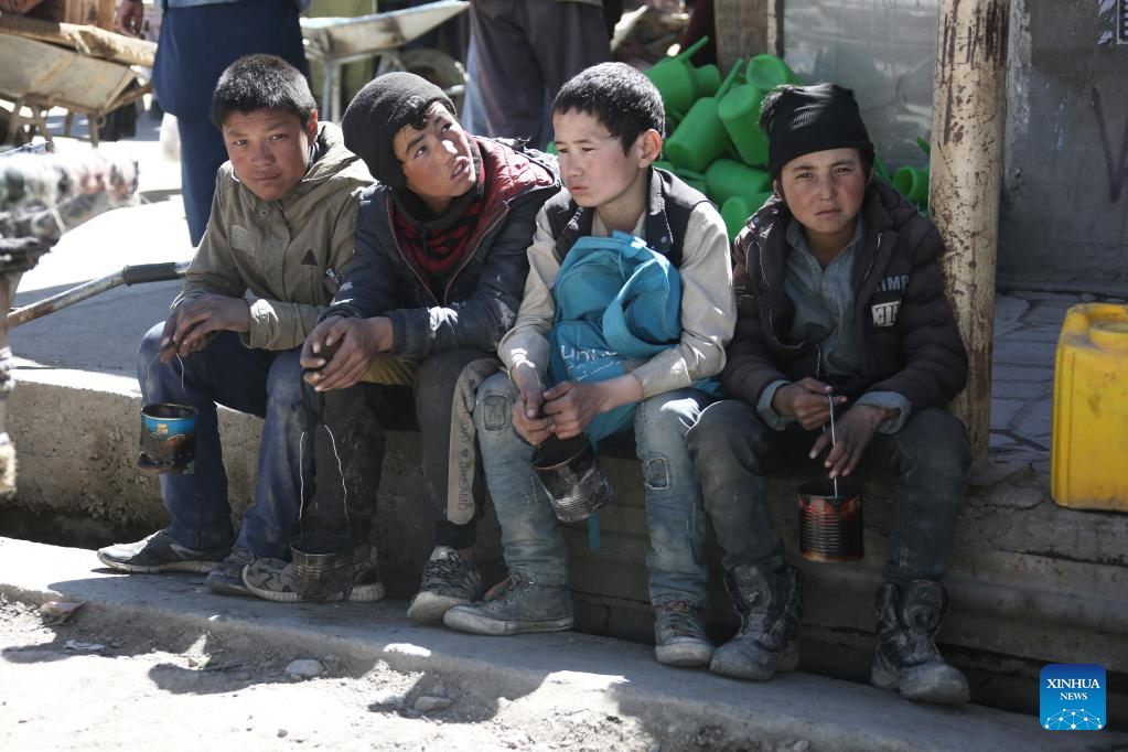 Children are seen in Bamiyan city, central Afghanistan, March 17, 2022. (Photo by Saifurahman Safi/Xinhua)