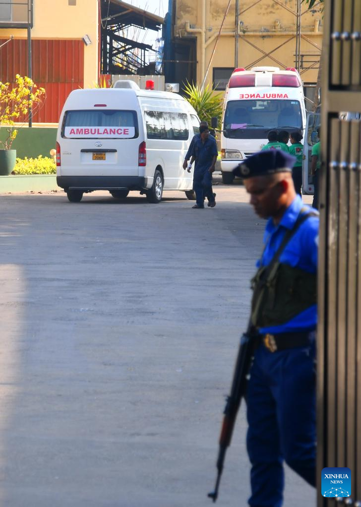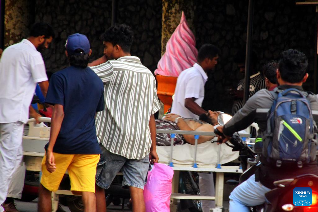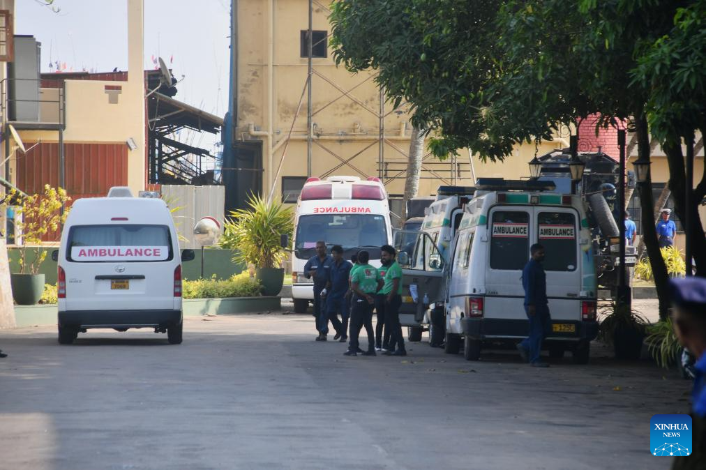 Local media earlier reported that around 180 people were on board the frigate. Sri Lanka Navy launched rescue operations immediately after receiving a distress call reporting that the vessel was sinking. A total of 35 people from the frigate were rescued and transferred to the Karapitiya Teaching Hospital in the southern city of Galle. (Photo by Ajith Perera/Xinhua)