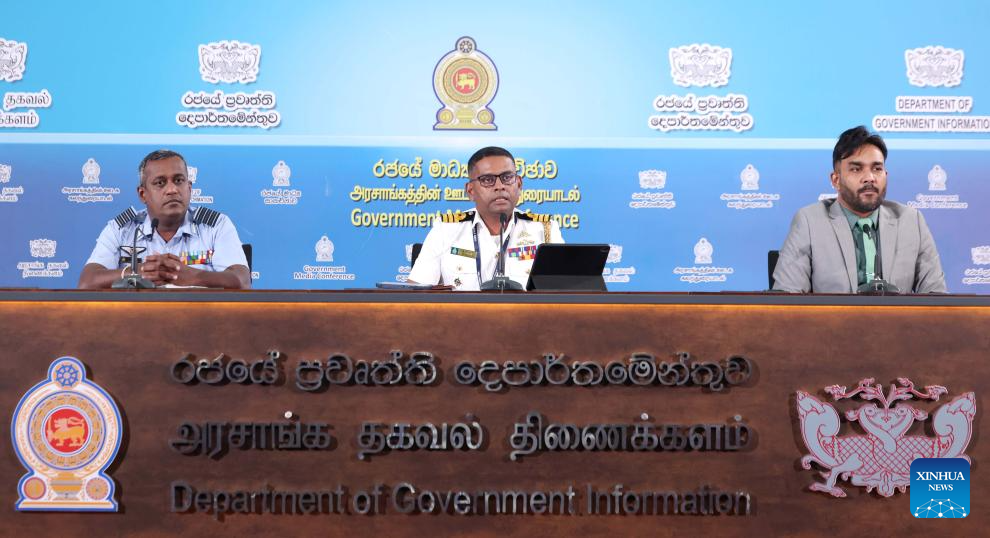 (260304) -- COLOMBO, March 4, 2026 (Xinhua) -- A Sri Lankan Navy spokesperson speaks at a press conference held by the Sri Lankan Department of Government Information in Colombo, Sri Lanka, March 4, 2026. At least 100 people were feared dead on board the Iranian frigate IRIS Dena after the vessel sustained a possible submarine attack off the Sri Lankan coast on Wednesday morning, according to Sri Lankan navy sources.