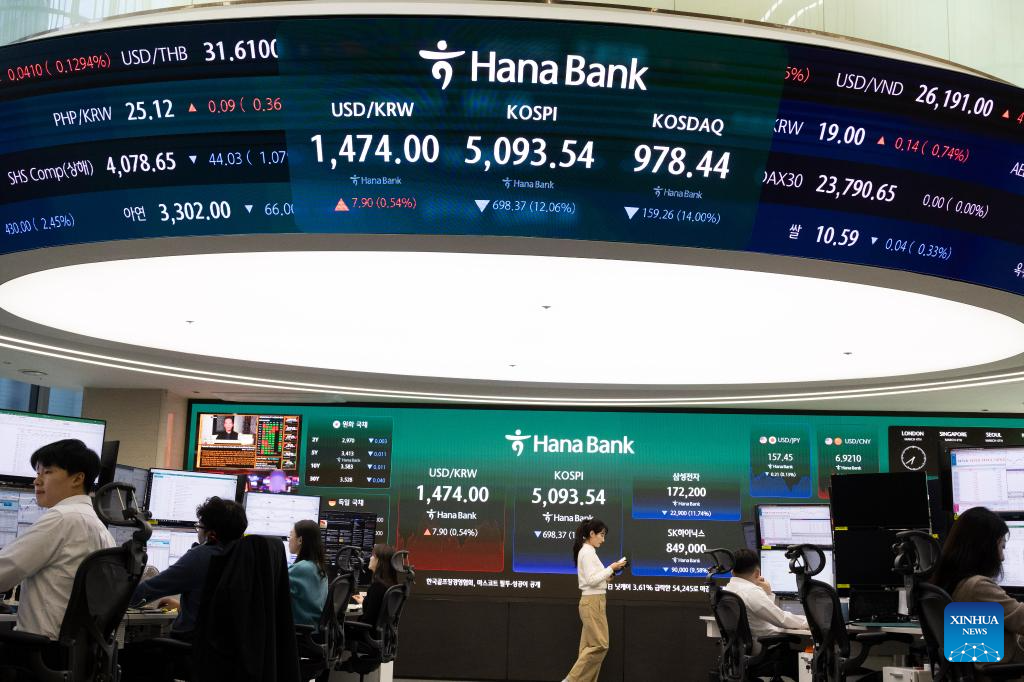 Both the KOSPI and the KOSDAQ saw their steepest daily percentage drops in history. (Photo by Jun Hyosang/Xinhua)