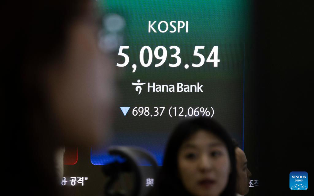 SEOUL, March 4 (Xinhua) -- South Korean stocks tumbled more than 12 percent on Wednesday amid circuit breakers, triggered by escalating Middle East conflict that led to panic selling for the second straight session.