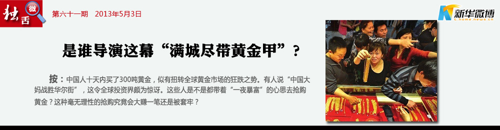 【大媽!威武!】 黃金大戰(zhàn)中,“中國大媽完勝華爾街”,被國人津津樂道。這股史無前例強勁的樂觀、自豪情緒,仿佛是中國百姓扛住了金融危機,人民幣搞定了美元……