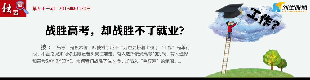 花費了高昂的學(xué)習(xí)成本、浪費了寶貴的年華、經(jīng)歷了非人的摧殘,結(jié)果戰(zhàn)勝了高考,卻陷入“就業(yè)難”的泥沼。當(dāng)很多大學(xué)生面臨畢業(yè)就失業(yè)、起薪比農(nóng)民工還低的時候,曾一直縈繞在耳邊的“高考成功、人生美滿”的話語,怎么變成了一記耳光、一個笑話?