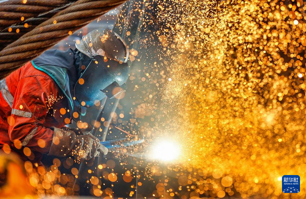 1月29日,在天津市滨海新区,海上油气平台建设工人进行现场施工。