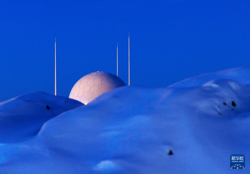 1月24日在中国最北卫星数据接收站漠河站拍摄的天线罩。