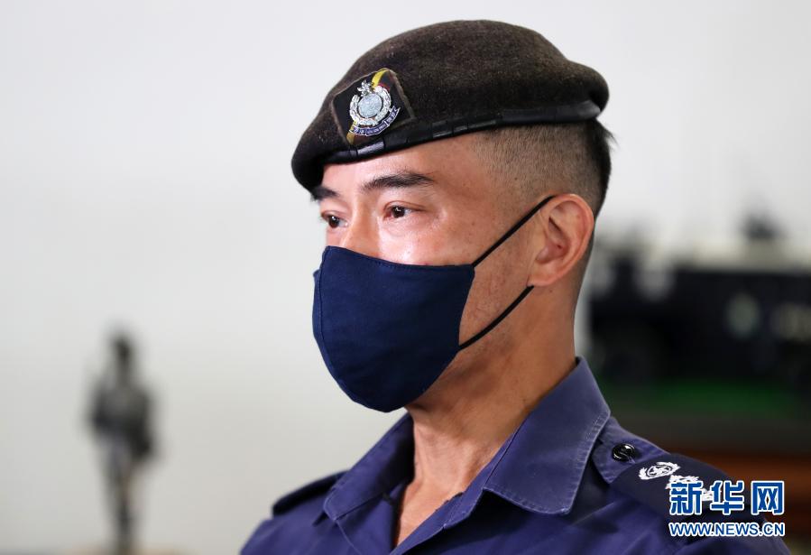 香港警務處警察機動部隊總部校長陳健國接受采訪(2月4日攝)。新華社記者 李鋼 攝