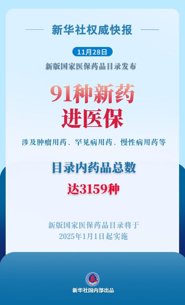 新华社权威快报|91种新药进医保 新版国家医保药品目录发布-新华网