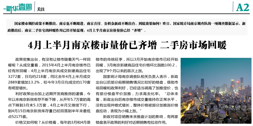 4月上半月南京樓市量?jī)r(jià)齊增