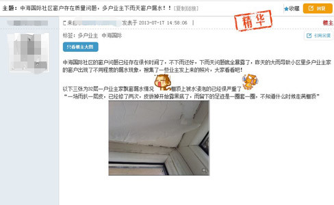 冰火兩重天,盡管業(yè)績方面成績單華麗,但另一方面中海全國多個項目卻問題不斷,飽受詬病。而開發(fā)商的中海地產態(tài)度冷淡、甚至漠視業(yè)主的訴求。人們不禁質疑:身為大型央企,社會責任何在?[詳細] |