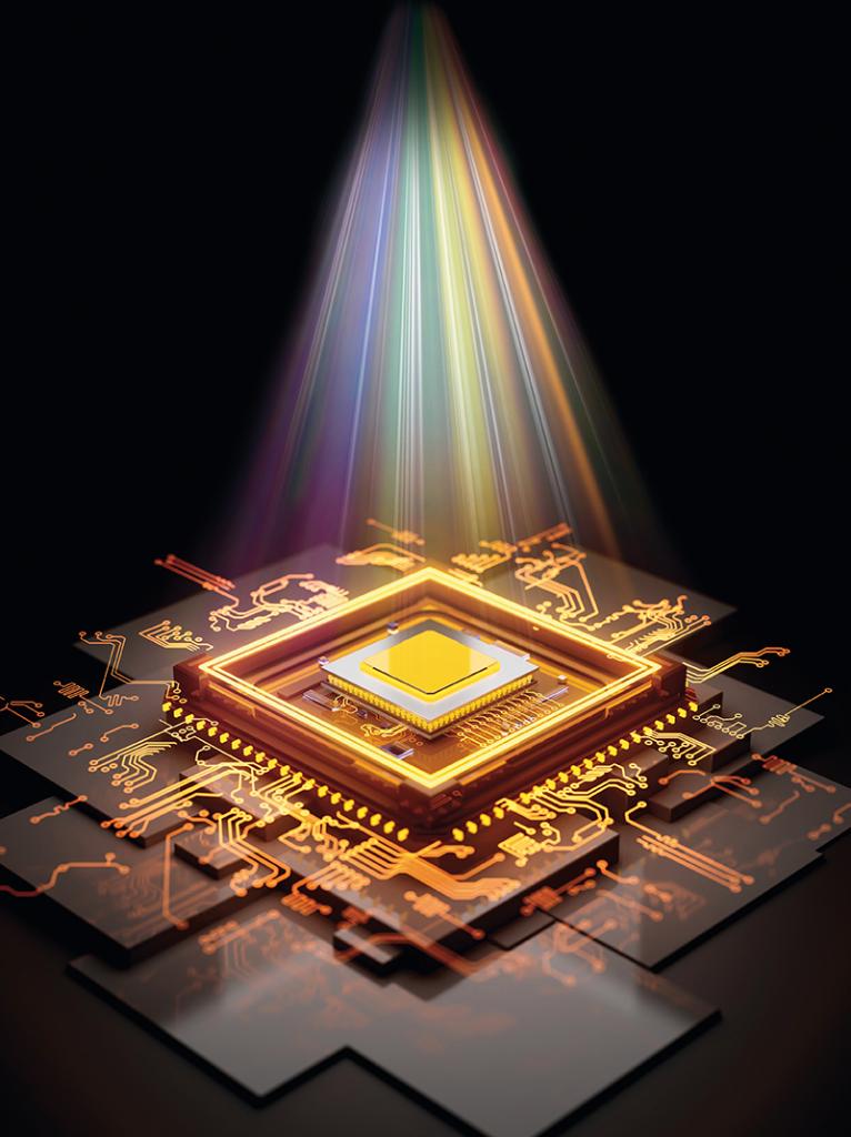 全模拟光电智能计算芯片效果图。 经长期联合攻关,清华大学研究团队突破传统芯片的物理瓶颈,创造性提出光电融合的全新计算框架,并研制出国际首个全模拟光电智能计算芯片(简称ACCEL)   新华社图