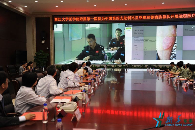 ????由中國(guó)第四支駐利比里亞維和警察防暴隊(duì)、浙江邊防總隊(duì)和浙江大學(xué)醫(yī)學(xué)院附屬第一醫(yī)院共同發(fā)起的“警民遠(yuǎn)程醫(yī)療協(xié)作”日前啟動(dòng)。6位醫(yī)療專家通過(guò)遠(yuǎn)程視頻系統(tǒng),為遠(yuǎn)在利比里亞的患病隊(duì)員進(jìn)行會(huì)診。