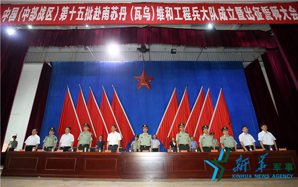 中國(guó)第十五批赴南蘇丹(瓦烏)維和工程兵大隊(duì)成立暨出征誓師大會(huì)12日上午在陸軍第54集團(tuán)軍舉行。