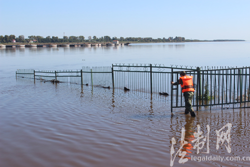 ????連日來,受俄羅斯上游水庫(kù)泄洪影響,黑龍江名山段水位迅猛上漲,給蘿北口岸通關(guān)安全帶來嚴(yán)重威脅。面對(duì)此情況,黑龍江邊防總隊(duì)蘿北邊防檢查站官兵采取多項(xiàng)措施,全力確??诎俄槙惩P(guān)。