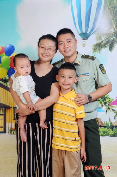 2017年8月10日陳娟帶孩子來隊探望丈夫