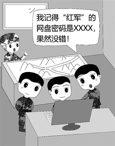 ????演練結(jié)束,這名文書坦言,他早就知道對(duì)方的網(wǎng)盤密碼。原來,此前,各營(yíng)文書為了便于工作交流,有時(shí)會(huì)使用網(wǎng)盤傳輸或分享文件,一些網(wǎng)盤用戶名和密碼不少人都知道。這次演練前,“藍(lán)軍”營(yíng)文書在用網(wǎng)盤調(diào)取查閱資料時(shí),無意中在對(duì)方網(wǎng)盤中發(fā)現(xiàn)了秘密。