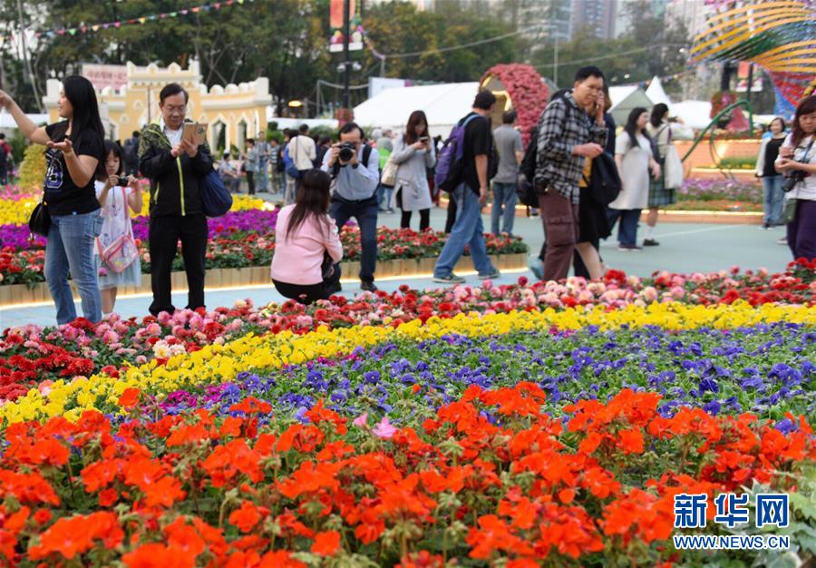 3月16日,市民在香港花卉展覽上參觀拍攝。當(dāng)日,2018年香港花卉展覽在香港維多利亞公園揭幕,展出約40萬(wàn)株花卉,吸引眾多市民和游客前往參觀。新華社記者 秦晴 攝