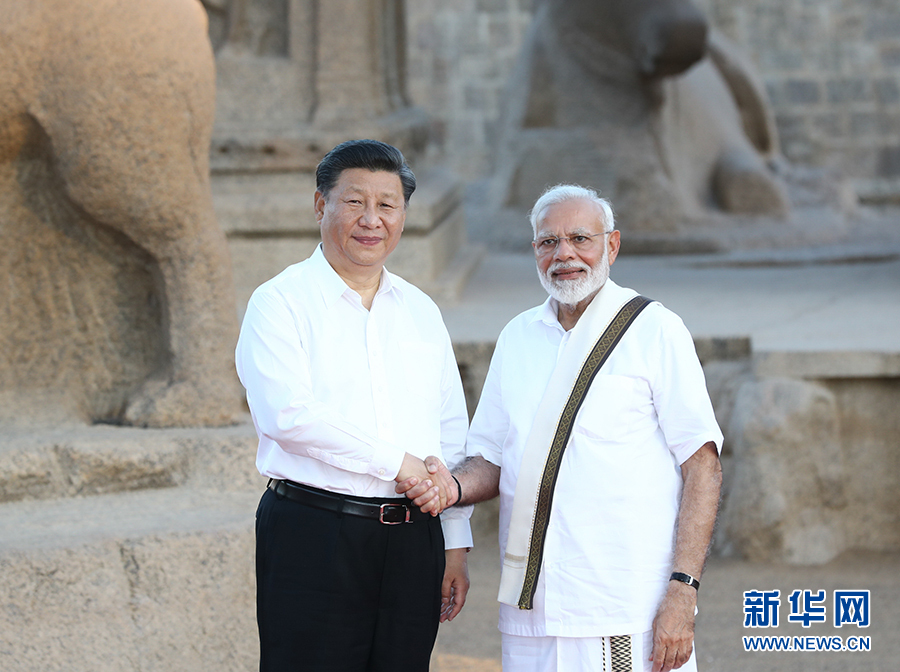 10月11日,國家主席習(xí)近平在金奈會見印度總理莫迪。 新華社記者 鞠鵬 攝