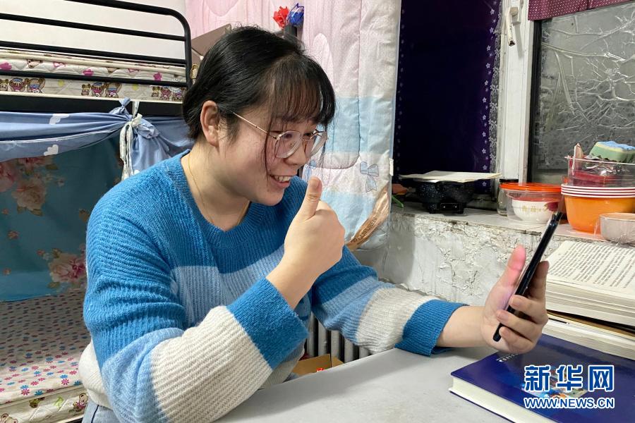 2月10日,在哈爾濱市平房區(qū)的宿舍里,劉雨晴在線上指導腦癱兒童進行康復訓練(手機照片)。
