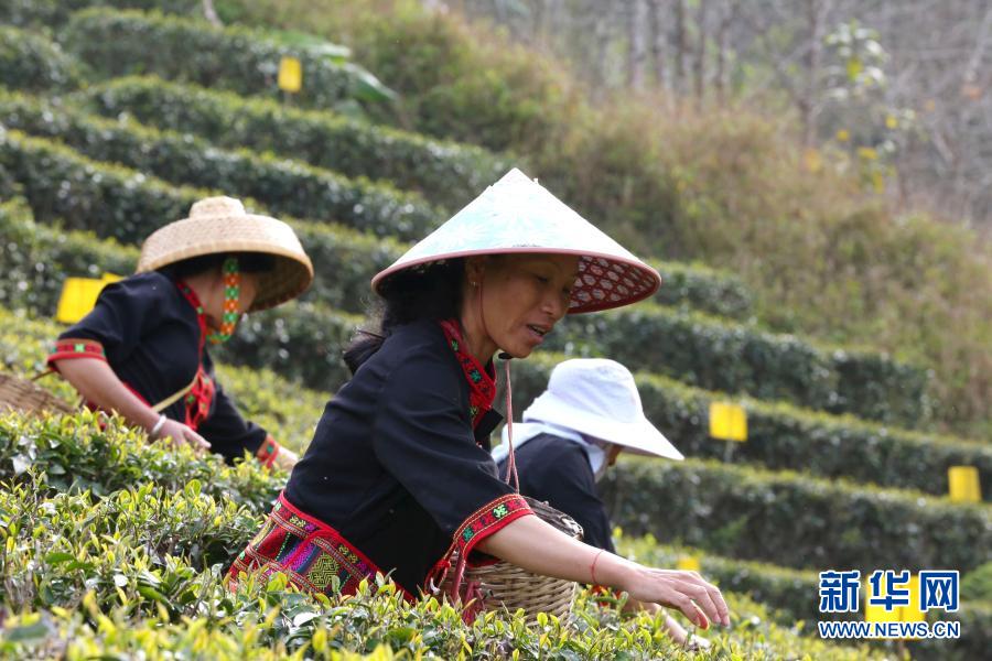 番賽村村民在茶園采摘春茶 (2月24日攝)。新華社記者 吳茂輝 攝