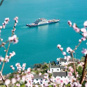 春到三峽,桃花盛開,江水碧綠,船舶往來如梭,構(gòu)成一幅幅美麗的圖畫。