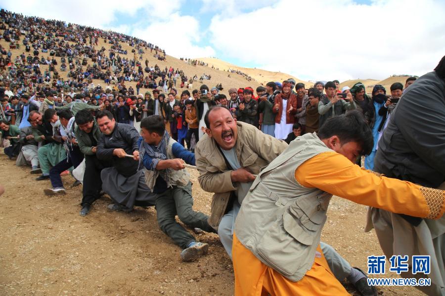 3月21日,人們?cè)诎⒏缓拱兔讚P(yáng)參加諾魯孜節(jié)拔河活動(dòng)。當(dāng)日,阿富汗民眾迎來諾魯孜節(jié)。新華社發(fā)(阿齊米 攝)