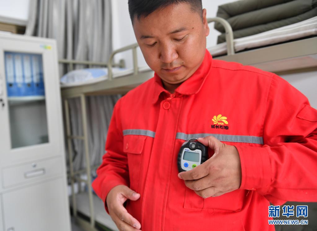 4月28日,巡線隊(duì)員侯勵(lì)峰出發(fā)前佩戴氣體檢測(cè)報(bào)警儀。新華社記者 張博文 攝