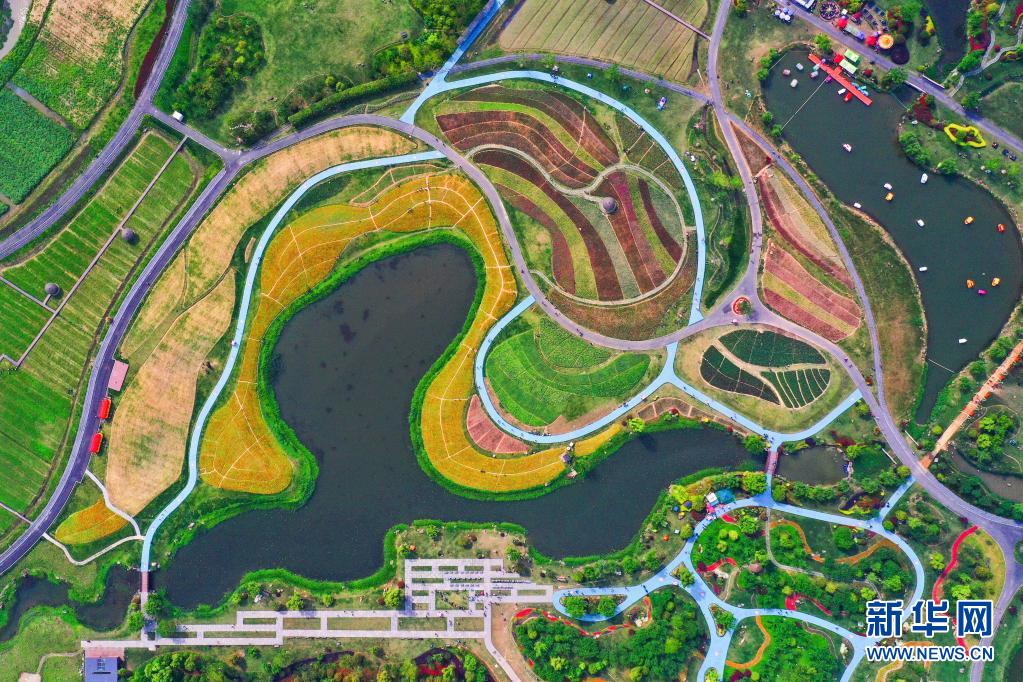 這是5月2日拍攝的浙江省杭州市余杭區(qū)徑山鎮(zhèn)的千畝繽紛花海(無人機照片)。
