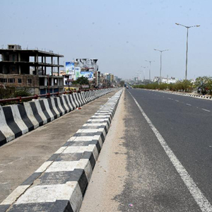 這是5月5日在印度巴特那拍攝的實(shí)施部分封鎖措施下的道路。