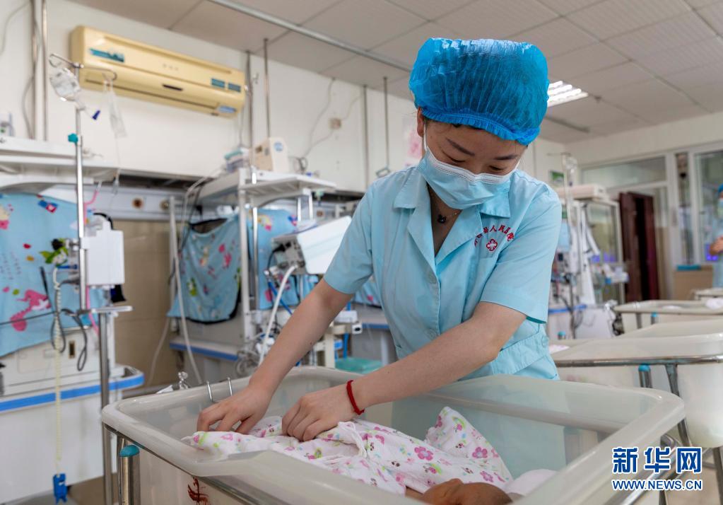 5月11日,護(hù)士在貴州省黔西市人民醫(yī)院新生兒科為患兒做晨間護(hù)理。