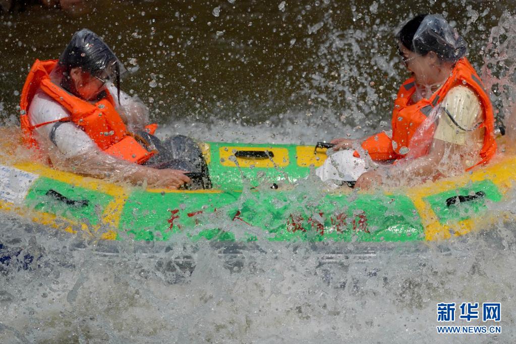 5月12日,游客在河北省邢臺市天河山景區(qū)漂流。