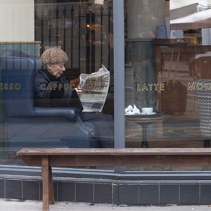5月17日,一名顧客在英國倫敦一家咖啡館看報(bào)。