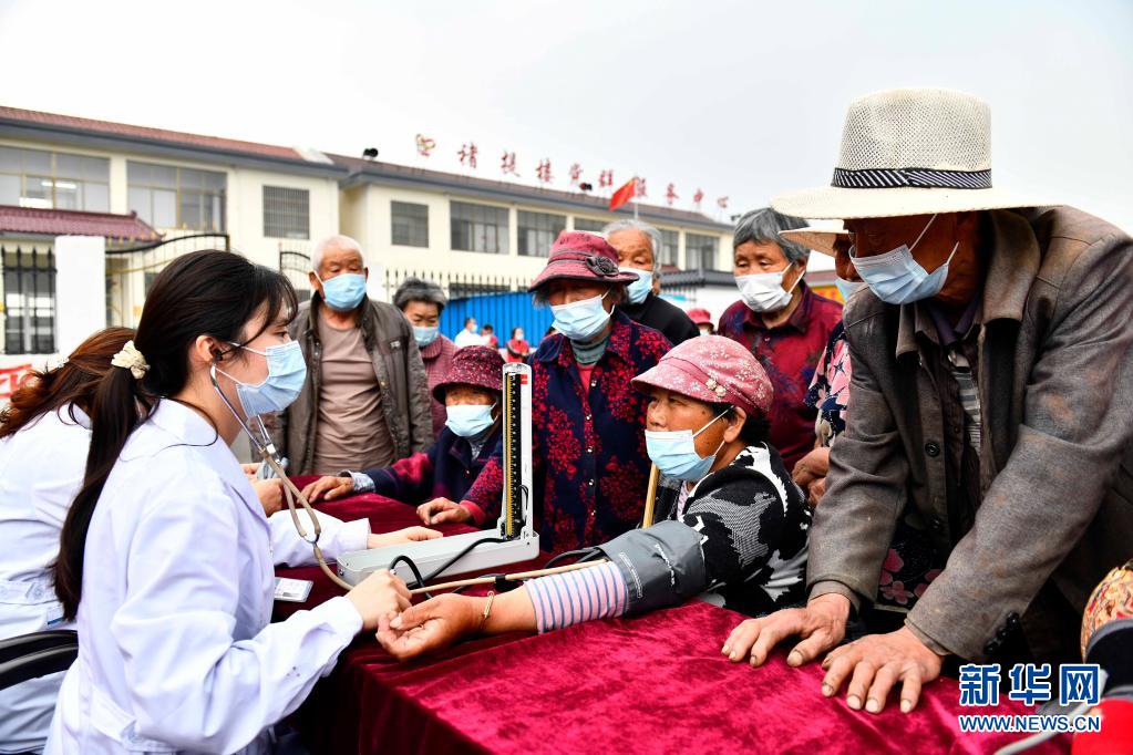 5月21日,在棗莊市臺(tái)兒莊區(qū)澗頭集鎮(zhèn)褚提樓村,“學(xué)黨史惠民”醫(yī)療小分隊(duì)為群眾開展送醫(yī)、送藥服務(wù)。