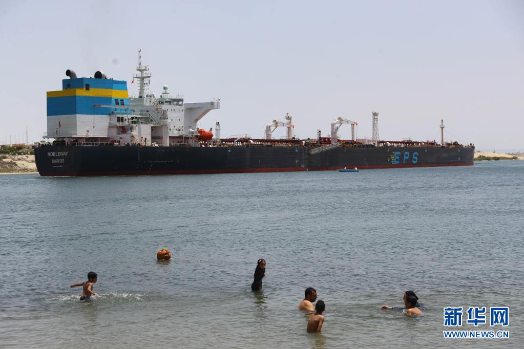 這是5月30日在埃及伊斯梅利亞省拍攝的航行在蘇伊士運(yùn)河上的貨船。