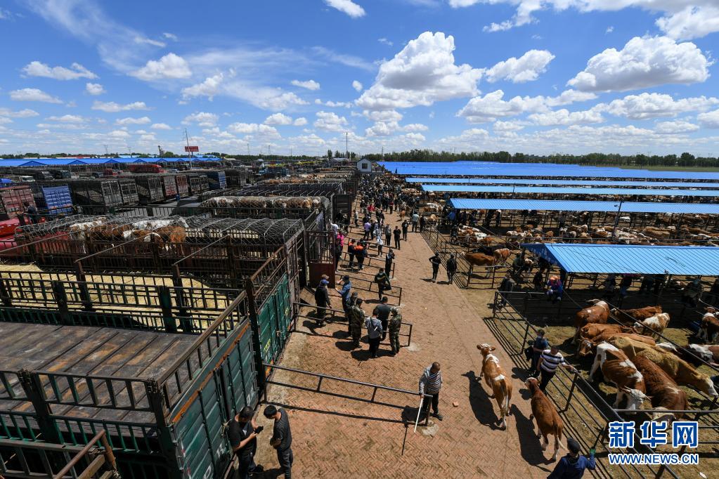 開魯牛市位于內蒙古自治區(qū)通遼市開魯縣,歸屬開魯縣雨田農畜交易市場有限責任公司。每逢公歷個位帶有“1、4、7、9”數字的日子為牛市交易日,牛市設有2000個交易攤位,可同時容納超過2萬頭活牛。6月1日是開魯牛市6月份第一個交易日,當天進場21300頭活牛,近半數活牛達成交易,交易人數超過5000人次。
