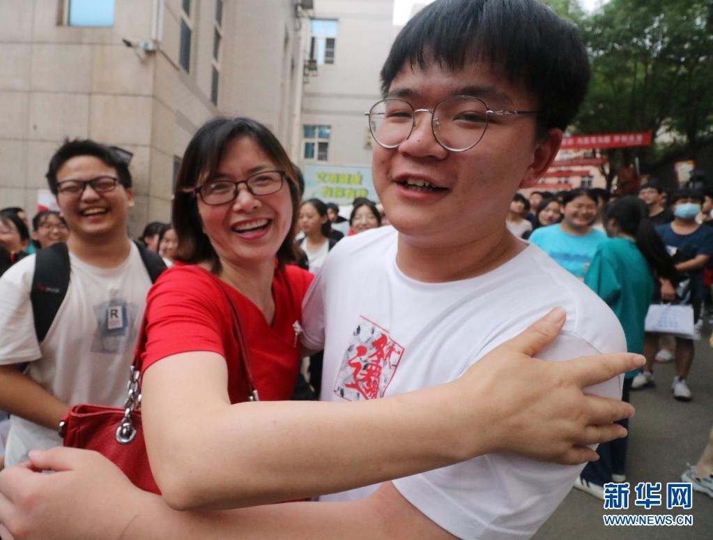 6月9日,在湖南省婁底市第二中學(xué)考點(diǎn),走出考場的老三李慶民和班主任舒老師擁抱。