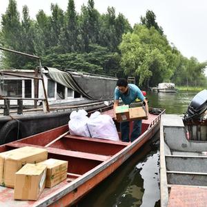 南陽鎮(zhèn)留守老人多,外出的子女會(huì)為父母寄來各樣的網(wǎng)購物品。作為土生土長(zhǎng)的南陽鎮(zhèn)人,王少朋知道,郵船雖小,卻承載著遠(yuǎn)方子女對(duì)家人的親情;郵路不長(zhǎng),卻投遞著一份溫情與守望……