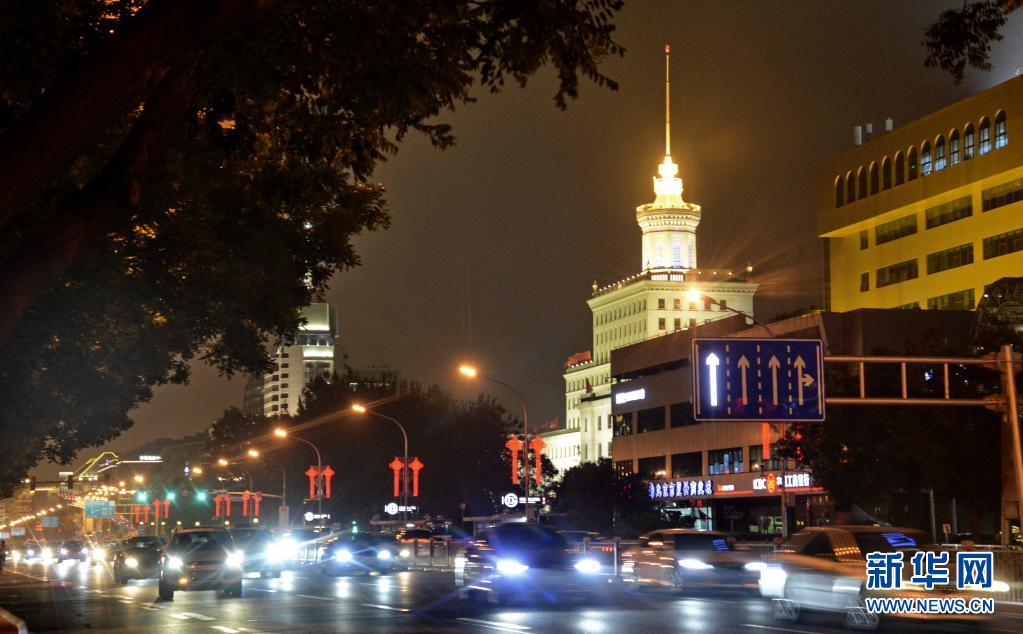彩燈裝扮的北京市復(fù)興路(6月28日攝)。