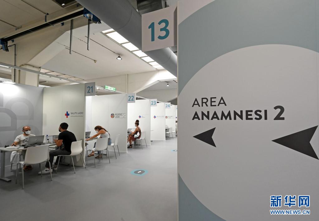 7月6日,人們在意大利羅馬一處新冠疫苗接種點(diǎn)登記。