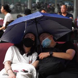 7月20日,旅客滯留在鄭州東站。候車廳出現(xiàn)漏雨情況,旅客撐傘擋雨。