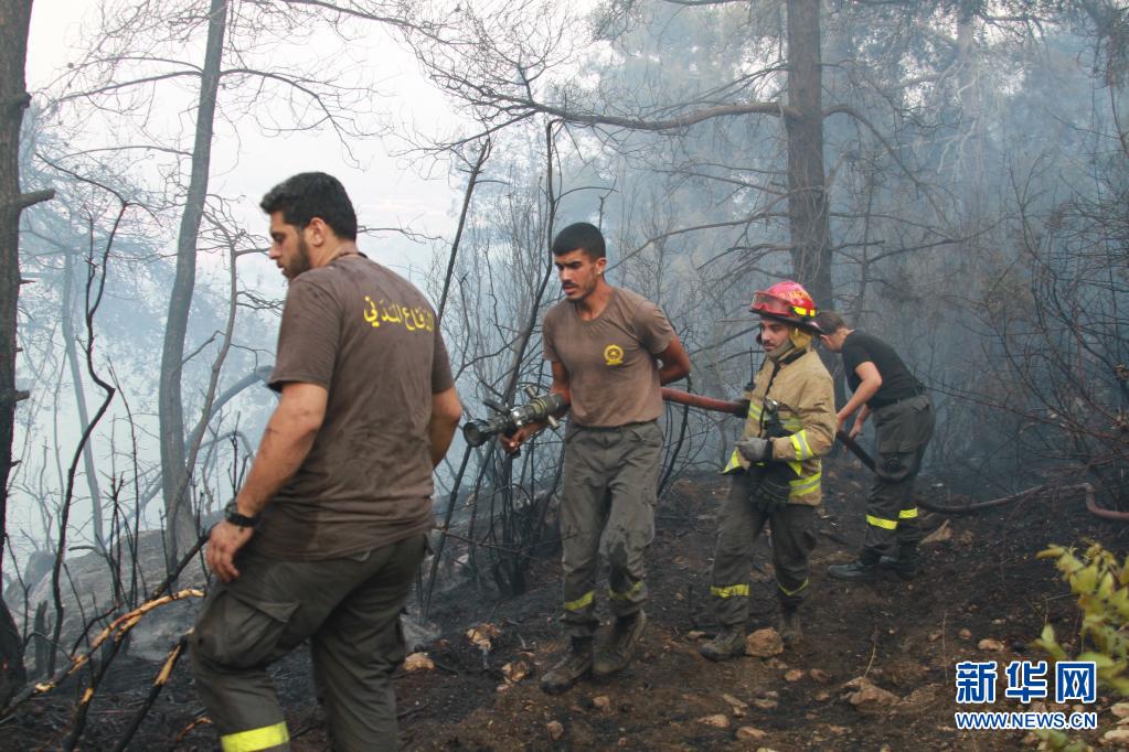 7月29日,黎巴嫩民防人員在阿卡爾省火災(zāi)現(xiàn)場(chǎng)滅火。
